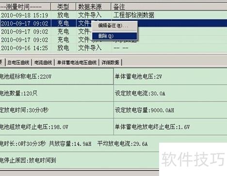 31、 选择蓄电池组后点击按钮或双击该组,将弹出界面,双击测量时间即可查看详细信息。