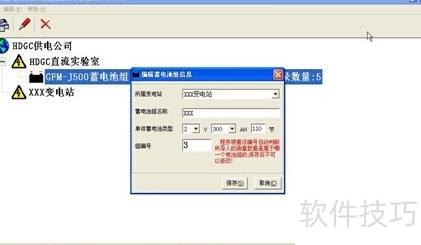 21、 选中蓄电池组,右键点击添加按钮,在弹出窗口中填写相关信息,确认无误后点击保存,系统将显示如下界面。