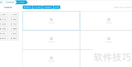 6、 完成整体布局后,可直接将左侧控件拖入预设区域并进行配置。整个过程可视化操作,通过简单拖拽即可实现功能,便捷高效,具体步骤不再赘述。