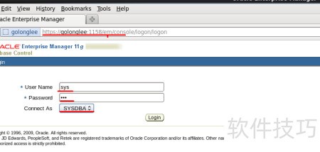 5、 启动完毕后,通过浏览器访问Oracle EM控制台,顺利打开OEM界面。