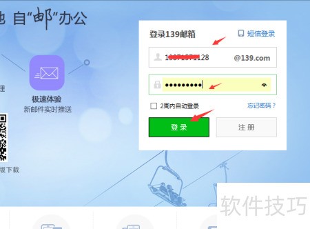 2、 打开邮箱登录页面,输入账号密码后点击登录。