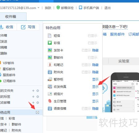 3、 点击特色应用中的收发传真功能