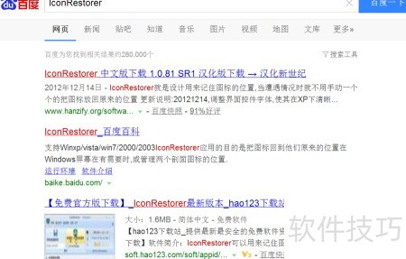 8、 除了修改系统注册表,还可借助第三方工具恢复桌面图标布局,例如通过百度搜索IconRestorer这类专用软件,操作简便且效果良好。