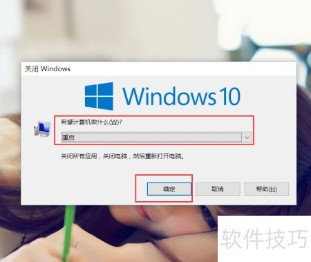 7、 完成注册表编辑修改后,请在桌面同时按下Alt+F4键,于弹出的关机窗口中选择重启选项。只有重启电脑后,系统才会应用更改,桌面图标布局才能恢复正常显示状态。