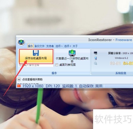 10、 在软件主界面点击保存当前桌面布局按钮,即可将现有桌面图标 arrangement 存储至软件内,方便日后快速恢复原有布局。