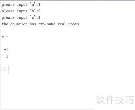 9、 以方程 x? + 2x + 1 = 0 为例运行脚本,可得如下结果。