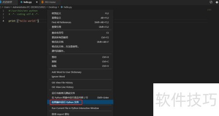 8、 此处显示VS Code的欢迎界面,可新建一个.py格式的Python文件,在空白区域右键点击并选择在终端中运行Python文件,即可查看程序的输出结果。