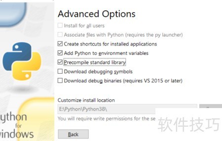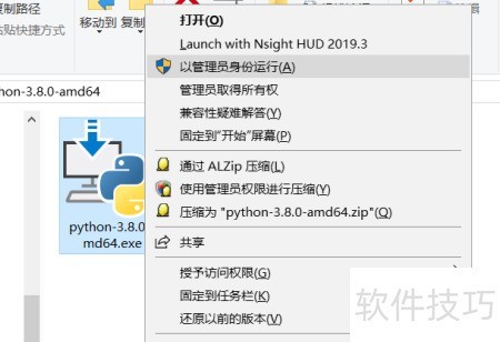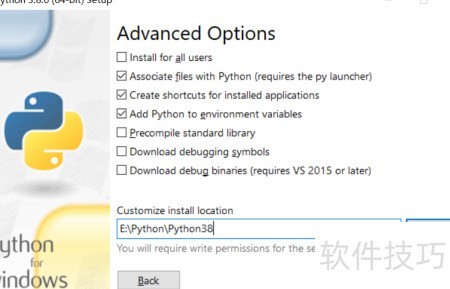 1、 下载Python 3.8压缩包后解压,以管理员权限运行安装程序;选择自定义安装,勾选将Python 3.8添加至环境变量,然后点击下一步继续完成后续安装步骤。