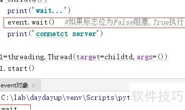 3、 调用 event.wait() 方法时,程序会检查内部标志位的状态。若标志位为 True,则方法立即返回,线程继续执行后续代码;若标志位为 False,当前线程将被阻塞,暂停运行,直到其他线程将标志位设置为 True,此时阻塞解除,线程恢复执行。该机制常用于线程间的同步协调。