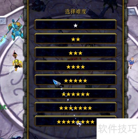 1、 进入游戏后选择难度,星星越少表示难度越低。