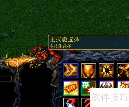 4、 点击技能面板第三排前两个图标,学习英雄的初始技能。