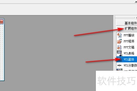 3、 在右侧查找并点击扩展组件及VCL窗体选项。