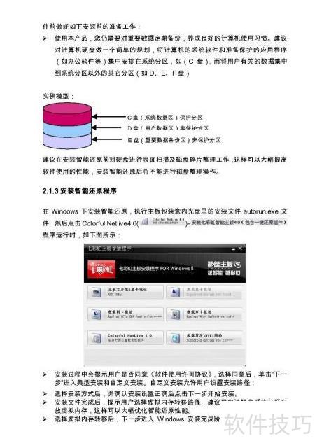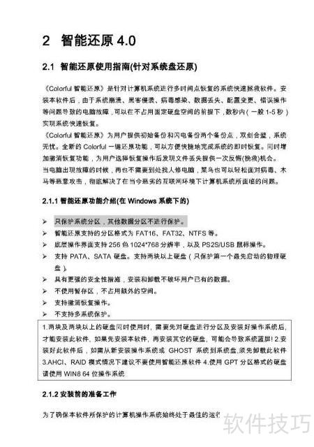 54、 当使用两块或更多硬盘时,必须先完成硬盘分区并安装操作系统,之后才能安装该软件。若在添加其他硬盘前先行安装此软件,可能导致系统出现蓝屏现象。安装本软件后,若需重新安装操作系统或将GHOST系统写入系统盘,务必提前将其卸载。在AHCI或RAID模式下,不建议使用智能还原类软件,以免引发兼容性问题。此外,若硬盘采用GPT分区格式,则应搭配Windows 8 64位及以上操作系统使用,以确保系统正常识别和稳定运行。