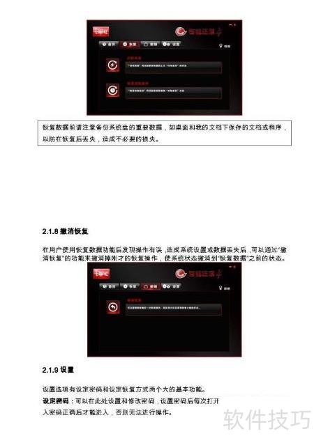 87、 当用户使用数据恢复功能后若发现操作失误导致系统设置或数据丢失,可利用撤销恢复功能取消此前的恢复操作,将系统状态回退至执行数据恢复前的原始状态。