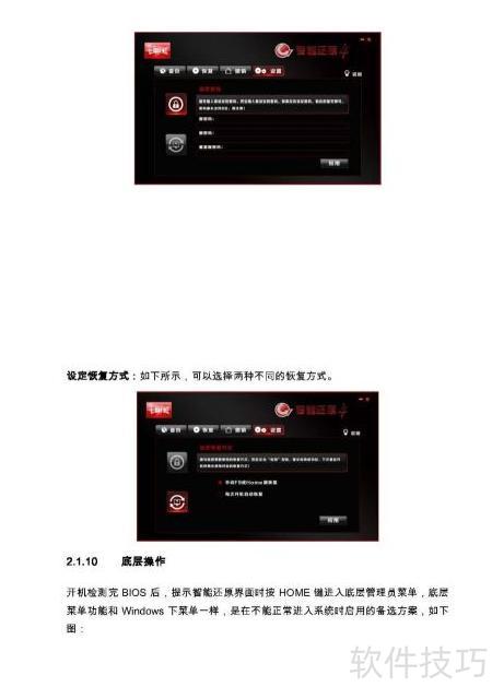 73、 智能还原包含两个操作平台:一是在Windows系统中的操作界面,二是在开机时按下HOME键进入的智能还原界面,即底层操作界面。两种界面各有功能,以下将分别介绍其具体使用方法。