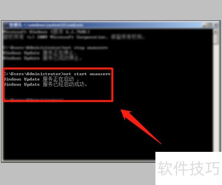 10、 返回DOS黑窗口,输入net start wuauserv并按回车,重新启动Windows更新服务,随后重启计算机即可完成操作。