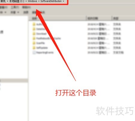 8、 按下Win+E键打开资源管理器,进入计算机,导航至C盘的Windows文件夹,找到名为SoftwareDistribution的目录。