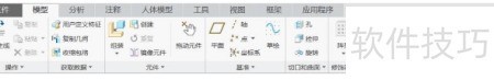 6、 位于界面顶部的菜单栏即为功能区,集中了Creo Parametric 4.0中常用的各种操作命令,方便用户快速访问和使用各项功能。