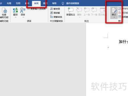 3、 点击菜单栏审阅中的修订功能即可开启。
