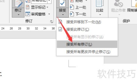 4、 完成修改后,点击接受所有修订,即可保留最终内容并清除修改痕迹。