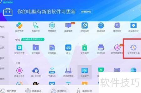 1、 打开电脑管家工具箱,找到文件恢复功能即可使用。