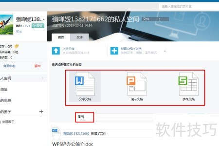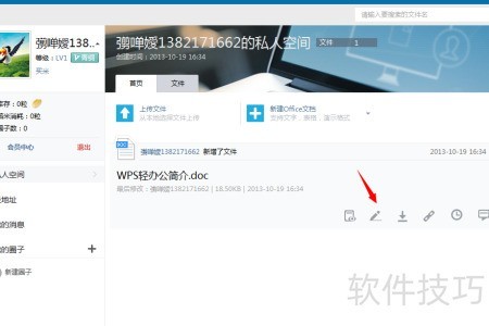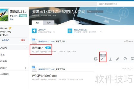 2、 进入私人空间后,页面将自动显示文档。