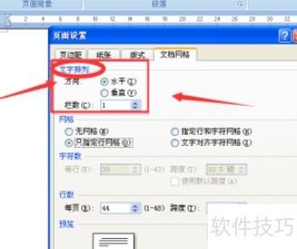3、 在文档网络设置中选择文字排列,调整垂直与水平方向。