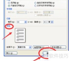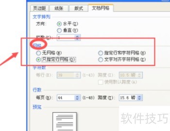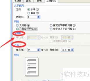 5、 第四步,进入文档网络设置,调整字符与行数至所需数值。
