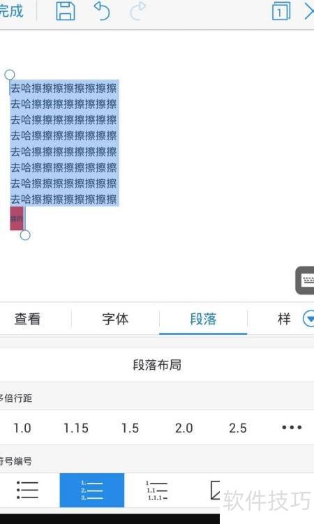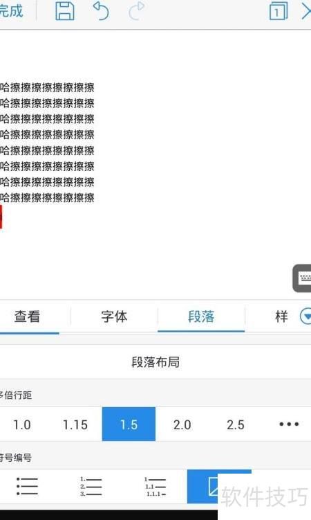 5、 在字体设置右侧点击选项,可调整行距为1.5倍。选中全部段落后,通过功能,即可实现段落的自动编号,操作效果2所示。