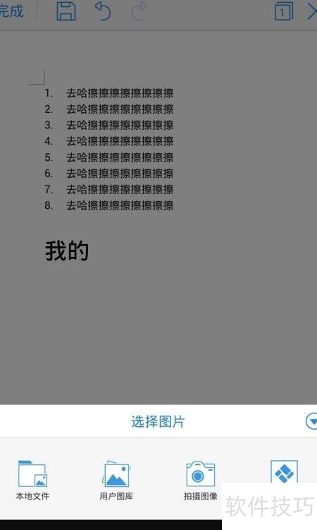 7、 有时为说明问题,需在文档中添加图片。可在选项中点击,从本地选择所需图像,即可将其插入文档,具体操作2所示。