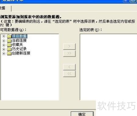 7、 打开数据库专家对话框,选择所需的ACCESS表,确认后返回报表模板设计界面。此时,数据库字段子菜单将显示出来,展开该子菜单,即可看到已选的ACCESS表及其具体表头信息。