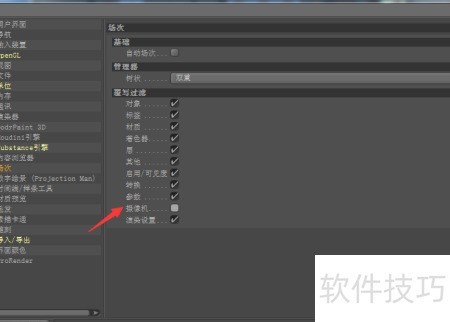 3、 取消勾选摄像机选项
