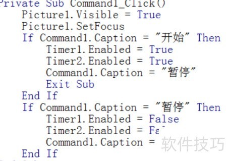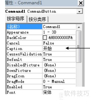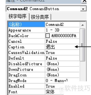 5、 根据图示配置启动按钮(command1)和退出按钮(command2)的相关属性。