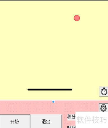 4、 包含两个时钟控件、小球图标和代表球拍的横线