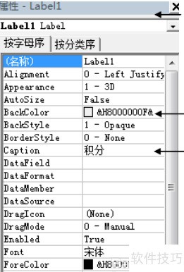 8、 添加两个标签,将label 1命名为积分,label 3命名为时间。label 2用于显示积分值,label 4用于显示时间值。按照图示要求设置各标签的属性,确保布局与功能符合设计需求。