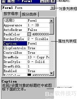 10、 属性设置窗口位于窗体设计器的右侧,1.1与图1.3所示。该窗口主要用于在界面设计阶段,为当前窗体及其包含的各种控件设定初始属性值。整个窗口由标题栏、对象列表框、属性列表框以及属性说明区域四部分构成。标题栏显示当前所操作窗体的名称。通过点击对象列表框右侧的下拉按钮,可以展开并选择窗体内包含的各个对象;一旦选定某个对象,其对应的属性和当前设定值便会显示在下方的属性列表中。属性列表支持两种排列方式:可通过按字母序或按分类序两个选项卡,将属性按名称首字母顺序或功能类别进行排序。当用户在属性列表中选中某一项时,窗口底部的说明区域会自动显示该属性的功能描述和使用说明,帮助开发者准确理解其作用,从而更高效地完成界面配置。