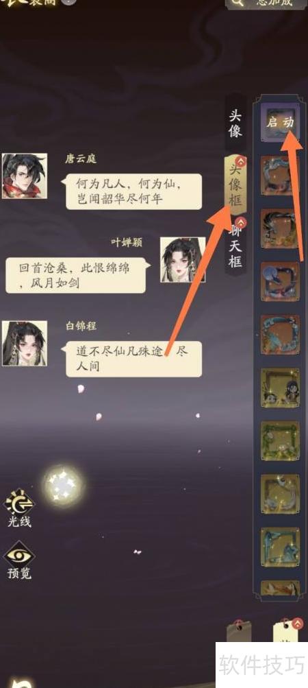 2、 进入页面,选好头像框后点击启动按钮即可。