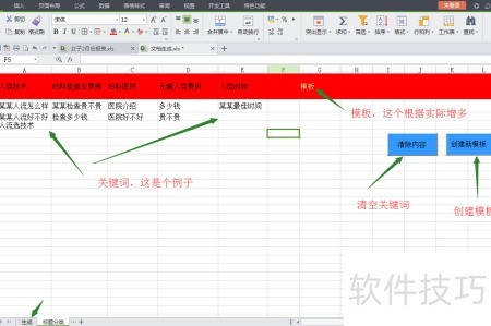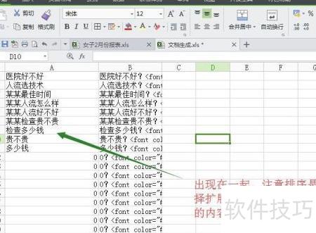 1、 将关键词填入对应模板,点击生成页面,确认显示效果后,选中A列进行排序,使所有标题集中排列,并连同B列一同展示。