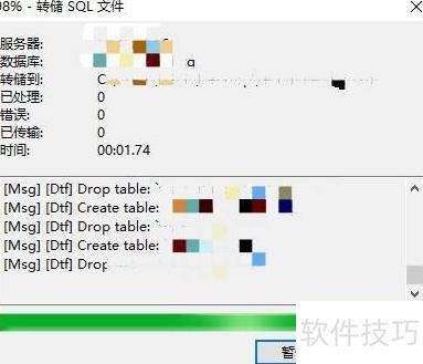 10、 在转储文件页面,可查看SQL文件转储及表结构导出均已完成。