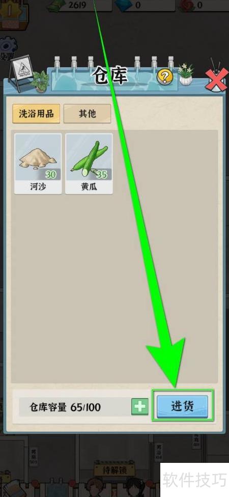 1、 启动浴场之王应用,进入主页面后点击底部仓库按钮,即可进入仓库界面。