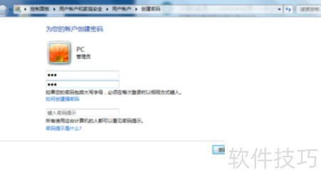 4、 在开始菜单中进入控制面板,选择用户账户和家庭安全,点击用户设置并为账户创建密码。设置后,每次开机或安装软件均需输入密码,操作较为繁琐。也可调整设置,使开机时无需输入密码,提升使用便捷性。