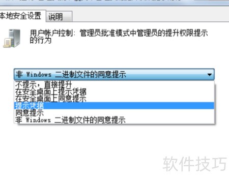 3、 双击修改用户账户控制设置,将管理员提升权限时的提示方式更改为要求输入凭据。