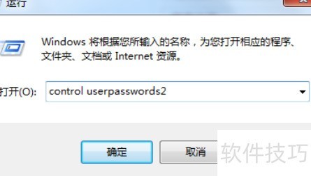 5、 接下来设置开机无需密码,避免每次输入的麻烦。只需在运行框中输入 control userpasswords2 即可进行相关设置。