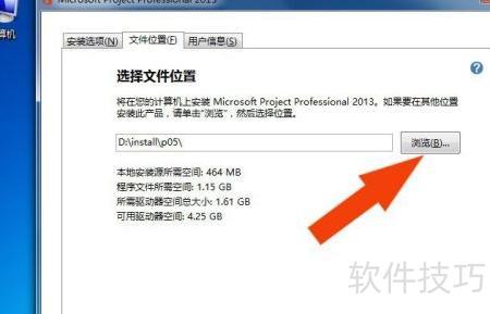 3、 在Project2013安装向导界面,选定安装路径后,点击安装按钮即可开始安装,具体操作所示。