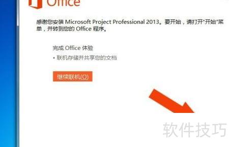 5、 安装完成后,Project2013会弹出提示窗口,只需用鼠标左键点击按钮即可,具体操作所示。