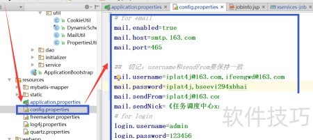 6、 在xservice-job项目的config.properties文件中设置邮件发送地址。