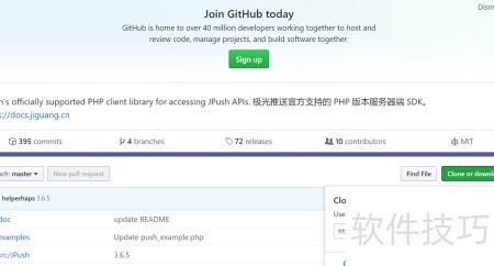 3、 访问极光JPush PHP SDK页面,跳转至GitHub并下载对应的SDK文件。