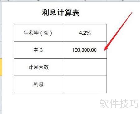 1、 在表格中输入4.2%作为年利率。