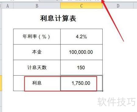 4、 输入公式计算利息,完成运算。