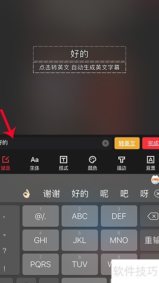 10、 在输入框中输入中文,点击转英文,即可生成并添加双语字幕。